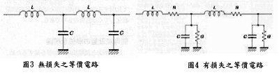 事实上导体损失的情况尚未到非常严重的地步,主要原因是导体损失与频率的平方根成比例,所以导体损失对频率的变化率比较迟钝。Pattern截面积很小时导体损失的绝对值,亦即直流阻抗却非常大,因此必需采取妥善的对策处理。相形之下诱电损失的影响一直未受到重视,由于诱电损失是与频率成比例,假设造成诱电损失的频率减少一位数,相对的诱电损失也随着降低一位数,换言之一般都以为祇要频率未超过一定范围,基本上可不将诱电损失视为问题,不过诱电损失会随着频率成比例增减,因此根本上它是属于潜在性危险因子。讨论导体损失与诱电损失的影响时,必定会论及信号衰减量的单位,由于过去一直是使用「dB」为单位,因此一般对单位长度「dB/英吋」的损失单位不太习惯,虽然这种计量单位常用于通讯导线(cable),但是对电路板导线pattern设计者而言却很漠生,而且一直将导线pattern误认为是如图3等价电路所示祇有电感(inductance)L与电容C(capacitance)之无损失线路,然而实际证明必需将电路板导线pattern视为一种损失线路,如果用解析波动方程式分析就可清楚看到单位长度的dB效应。如图4等价电路所示,直列的直流阻抗R与C并列的诱电损失(conductance)G会施加于L,相对于 ωL与jωC势必要考虑改变成 ωL+R与 ωC+G(一般祇需考虑G<<ωC,R<<ωL)。