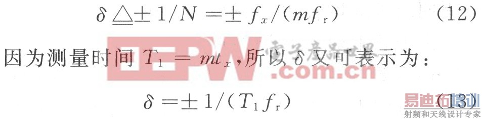 式中:△fx,△fr,△N为绝对误差。相对误差δ=±(△fx/fx),由于fr由晶体振荡器输出,其稳定度较高,所以△fr非常小,可忽略不计。△N极限是±1,故测量误差δ为: