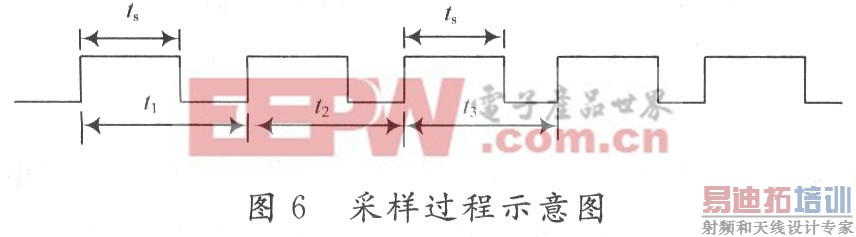 检测线圈和检测电路组成振荡器,振荡频率既不能太高,也不能太低。在本设计中,振荡频率为200 kHz(此频率指硬币未通过线圈时的振荡频率)。经实际测试,硬币通过检测线圈时的速度范围为0.1~0.5 m/s。可见,硬币通过币道时的速度有较大的变化范围,同一硬币多次投币时,通过检测线圈同一点(比如:A点)的速度也有区别。为了实现每次投币多点采样时,检测线圈和硬币的相对位置都一样,就必须采取等位移多点采样。当硬币的前沿通过D点时开始采样,以硬币前沿通过D点的时刻作为采样时间的零起始时刻,每过0.1 mm采样一次。首先,需要计算出通过每一个0.1 mm位移所需要的时间t1,t2,t3,…。由于速度越来越快,必定有t1,>t2>t3>…,再每隔t1,t2,t3,…时间检测采样一次。图6为采样过程示意图,tS为采样时间。[p]