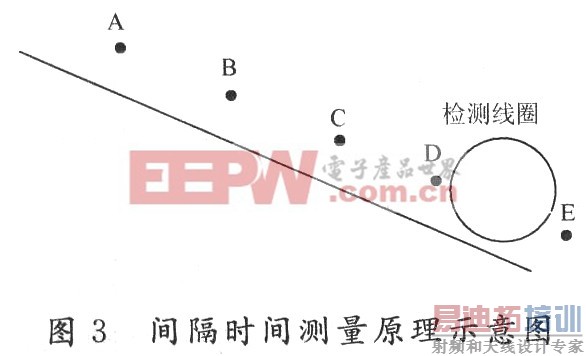 图3为基于FPGA的间隔时间测量原理示意图,A,B,C三点为光电检测点。当硬币通过光电检测点时,光电检测电路的输出由低电平跳变为高电平。图4为硬币通过币道时A,B,C三个光电传感器的输出波形。