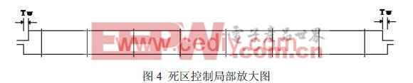 为了保护 IGBT,防止上下桥臂同时导通而烧毁器件,设计了死区模块,它可根据实际需要设置死区时间,在本文中死区时间为 200 ns。死区发生器由死区计数器和一些组合逻辑组成,使同相的上下桥臂驱动信号错开一个死区时间,以防止功率器件短路。图 4所示的为放大后具有死区时间的局部波形。