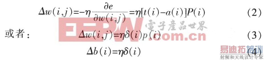 以上各式为Widrow-Hoff学习规则最小均方误差算法(LMS)。Widrow-Hoff学习规则的权值变化量正比于网络的输出误差及网络的输入矢量。该算法无需求导,因此较简单,并具有收敛速度快和精度高的优点。由于学习率与学习过程比较密切,因此学习率的取值非常关键。