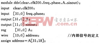 上述代码为DDS模块的Verilog HDL顶层文件。对应的模块图见图6。[p]