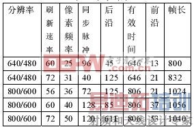 在实际设计中如何通过不同的系统频率确定适当的显示模式 ? 例如在 RhicSP2200 开发板中FPGA 的系统时钟频率为 50MHz。这个时钟频率可以用来设计 显示 800X600 模式,为了显示器显示效果好,采用场频(刷新频率)75Hz,那么帧长可以确定为 666,而行总长设计为 1000 像素。