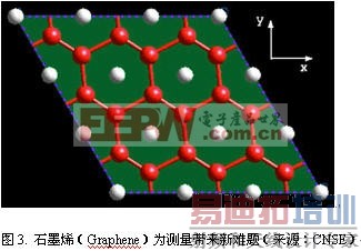 经过多年的学术研究,人们很熟悉纳米碳管,更知道纳米碳管不好实用,至少很难在纳米电子学上应用。原因是纳米碳管很难并可重复地结合到电子器件中去。如果能将纳米碳管“切”开,并展开成性能稳定的平面,目前一流的集成电路微细加工技术就能用上,实现碳材料电子学(改进目前的硅材料电子学)。近年科学界重大发现--石墨烯(Graphene)就是这种材料。石墨烯是由碳原子构成的二维晶体,一般厚度方向为单原子层或双原子层碳原子排列。Graphene(石墨烯)是其英文名,该命名与graphite(石墨)有关,也有人使用“单层石墨”