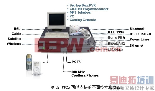 多年来,低成本FPGA器件已经成为机顶盒和视频网关的关键器件,可提供视频增强、丢失像素替换、视频转换、产品灵活性以及产品差异等功能。此外,这些器件还允许生产商方便地支持不同的技术和协议,如图2所示。