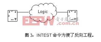 JTAG的问题在于INTEST命令,用于检查设计的内部逻辑功能。反向工程时,这一命令可用来判断设计的功能。图3给出了一个简单的例子,其中数据移入寄存器,执行INTEST命令,这样数据会在时钟作用下移入逻辑构造,进入下一寄存器,结果可以被读出。由于可将总体设计的复杂度缩小到更小的逻辑模块,因此这一命令可使反向工程的工作更容易。