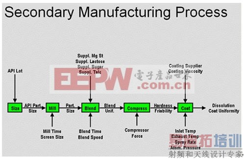该药片的生产过程大致如下图所示。每个过程的初始变量,过程变量都一一做了标注。这些变量是根据工作人员进行大规模头脑风暴,结合生产管理人员的质量管理经验进行初步挑选的。