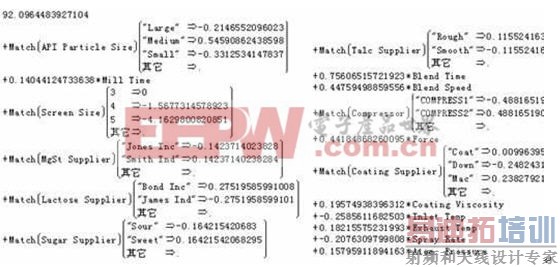 通过多元回归建模方法建立重要因素X对溶出度Y的影响方程y=f(x)。而JMP在统计方法上的专业性在这一步得到明显的体现。下图是所选重要X变量和溶解度Y之间关系的表达式。从表达式可以看到,screen size和Y值的关系很明显:当“screen size=3”的时候,对Y没有任何负面影响;当“screen size=4”的时候,对Y略有影响,为“screen size=5”的时候,对Y的影响被扩大-4.16倍。这样的分析结果和第三步通过交互式图形进行分析的结果完全吻合。