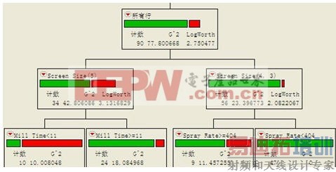 为了获得初步的改善方向,该药厂质量人员利用JMP的决策树(数据挖掘方法之一)工具,只需要点击几下鼠标,就获得了改善药片溶出度的初步方案(如下图):为了获得合格率最高的产品质量,初步的改善方案可以是:控制Screen Size=4或3,Spray Rate小于404。