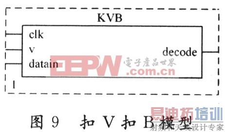 一V码检测原理与+V码检测的类似,所不同的是,一V码检测电路在正整流电路输出的信号脉冲控制下,对来自负整流电路输出的信号脉冲进行计数和检测、判定,若检测到一V码,则输出一V码信号。其模型如图7与图8所示。