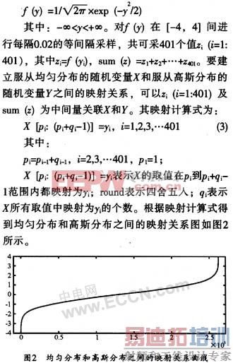 本文提出了一种在 FPGA 中快速产生高斯白噪声序列的实现方案。同时基于均匀分布和高斯分布之间的映射关系曲线,提出并应用了适合在 FPGA 中实现的折线逼近法。本文采用了 15 条首尾连接的直线段去逼近映射关系曲线 ( 按不同的工程精度要求,可选择个数不同的直线段去逼近 ) 。显然,所用的折线拐角越多 ( 直线段个数越多 ) ,精度越高,但所消耗的 FPGA 资源也越多。该方案具有简单易行,运算量小等优点。而且实现速度快,可源源不断的产生高斯白噪声序列,同时占用的硬件资源较少。由于软件采用 VHDL 语言编写,可移植性强,故可灵活用于 Watterson 信道模拟器或嵌入调制解调器等其它系统。