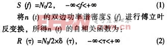高斯白噪声信号是一个随机过程,每个样值点都是一个高斯变量,其双边功率谱密度为常数 N0 / 2 ,即: