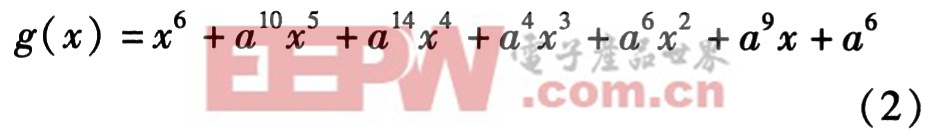 (1)确定RS编码器的生成多项式g(x),这里选用了最为常用的生成多项式,如式(1)所示。
