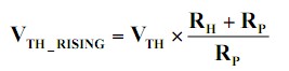随着VIN上升到1.0V以上,/RESET输出为低电平,表明输入电压低于监测门限。电流从VIN经过RP到内部的MOSFET驱动器,然后经过RH到GND,在RH上产生一个偏移电压。由于内部的电压基准以GND为参考,偏移电压加到了VCC上升时的门限值。新的上升门限值可以计算如下: