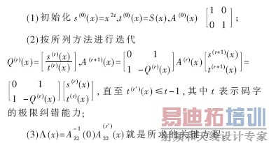 RS译码算法一般分为三步:伴随式计算、关键方程获得和错误图样的求解。其中关键方程的获得是RS译码中最困难、最为关键的一步。