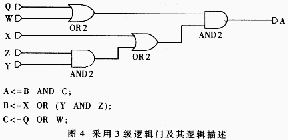 还有一个使电路复杂化的原因是逻辑电路的输入项太多以致需占用过多的面积。我们从图3和图4两个相同功能的逻辑电路和他们对应的VHDL描述来分析。