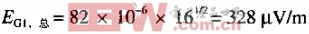 一条信号线的辐射为82UV,总的辐射与相关信号线数量的平方根近似成正比,所有16条线的辐射量为:
