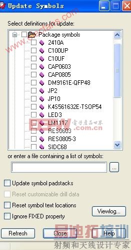这里可以在package symbols目录下列出了你制作的个人封装,找到你已经修改的封装元件打上勾,然后点击Refresh按钮就可以更换封装了。