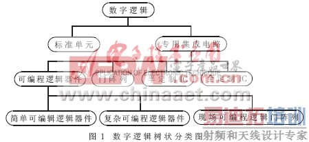 图1所示为数字逻辑树状分类图,由其可以看出,现场可编程门阵列(FPGA)是专用集成电路中可编程逻辑器件的重要分支。