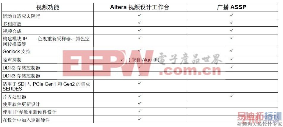 表1. Altera 视频设计工作台与广播ASSP 的对比