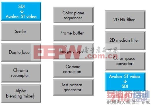 Altera 视频设计工作台集成了各种工具和构建模块视频功能,有助于加速定制图像格式转换设计的开发和实现。它包括以下组成: