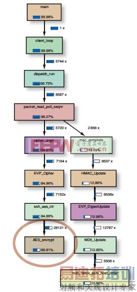 图 1 — 在采用 Valgrind 工具的 SCP 传输中,AES 加密占用三分之二的计算任务。