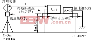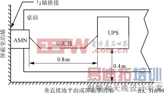 1)AMN和ISN与UPS之间的距离0.8m,距其它设备和其它金属面至少0.8m;