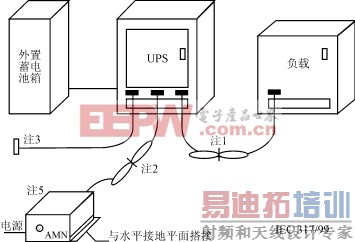 注3:UPS与一个AMN连接。所有的AMN和ISN也可以与垂直的接地平面,或者与金属壁连接。