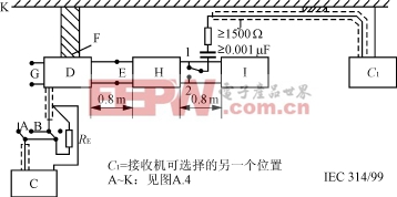 探头主要由一个耦合电容器和一个电阻构成,以使电网和地之间的总阻抗至少为1500Ω。电容器或保护测量接收机防止危险电流的任何其它器件对测量准确度的影响,均应小于ldB,或可以校准。
