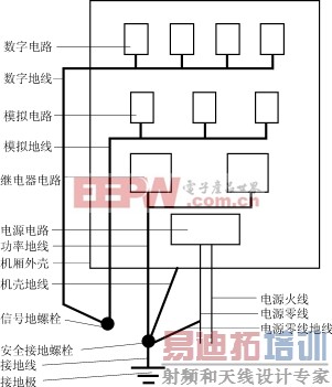 ——为防止高电压、大电流和强功率电路(如电源、继电器、电机)对低电平电路(如高频电路、数字电路、模拟电路等)的干扰,将它们的接地分开。前者为功率地(强电地),后者为信号地(弱电地)。而信号地又分为数字地和模拟地。信号地线应与功率地线和机壳地线相绝缘;