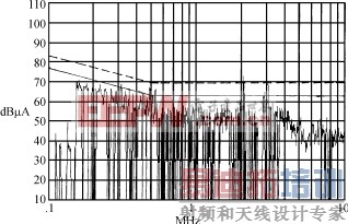 ②从测试频谱图2上可知零线上电源线传导发射的试验值均在标准值下。
