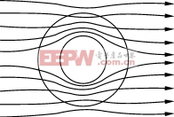 磁场屏蔽主要是利用高磁导率、低磁阻特性的屏蔽体对磁通所起的磁分路作用,使屏蔽体内部的磁场大大减小,如图7所示。
