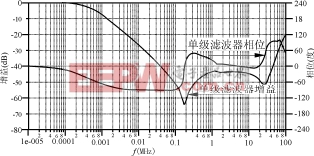图5增益和相位与频率的关系曲线(对单级滤波器)