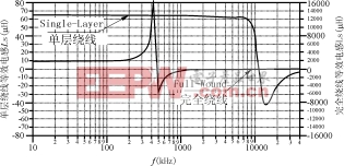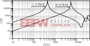 图18单层和完全绕线设计情况下阻抗与频率的关系曲线