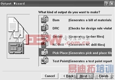 选择输出数据类型为 Pick Place(如图 2),再依次按“Next”继续,注意文件格式选择 Text(文本)、单位选择 Metric(公制)。然后选择菜单“Tools→ Preference…”,在弹出的 CAM Options 对话框中设定输出坐标文件所在的目录,选择菜单“Tools →Generate CAM Files” 在指定路径下生成坐标文件。