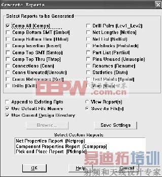 3) 坐标数据导出。选择菜单“Auto → Create Reports…”,弹出如图5 所示对话框,选定输出项目,例如 Comp ALL(Comps),按确定按钮后在 PCB 所在目录下生成坐标数据文件。