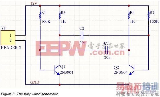 在原理图中我们首先要放置的元件是两个晶体管 ( transistors ) ,Q1和Q2。