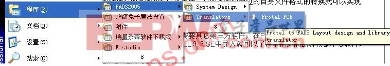 这个转换是要软件来实现的,PADS2005的安装后就自带了这个软件,所以再此也不详解了!详见下图: