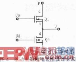 对于低端的管子Q4,由于其源极(s)接地,所以当控制Q4导通时,只要在Q4的栅极加大于阈值的电压信号Ud即可;但对于高端的管子Q1,由于其源极电位U是浮动的,仅靠单独在Q1的栅极上施加电压信号Up控制Q1导通比较困难。