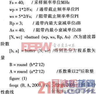 3 滤波器MATLAB设计的FPGA实现
