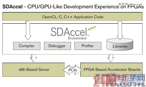SDAccel 环境包括架构优化的编译器、库、调试器和分析器,并提供类似于CPUGPU的编程体验。