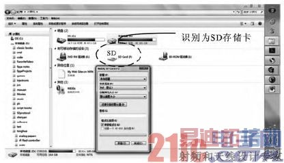 图9中虚线所圈是将设计下载到FPGA开发板,与电脑相连接后被识别为SD存储卡标记,可以看出该设计可以被电脑正确识别。