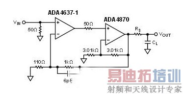 ADA4870是一款单位增益稳定的高速电流反馈型放大器,使用40 V电源能够提供1 A输出电流和2500 V/μs压摆率。 ADA4870的创新架构采用ADI公司的专有高压超快速互补双极性(XFCB)工艺制造,可为需要驱动低阻抗负载的应用提供高输出功率、高速信号处理解决方案。此篇主要介绍了ADA4870特性、应用范围、参考设计电路以及电路分析,帮助大家缩短设计时间。