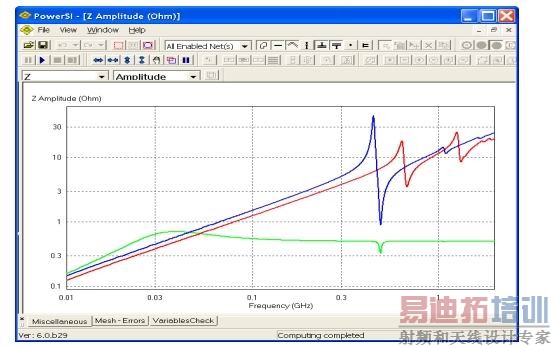 图4显示了在三种不同设置下,用Sigrity PowerSI计算得到的电源供电系统的输入阻抗: