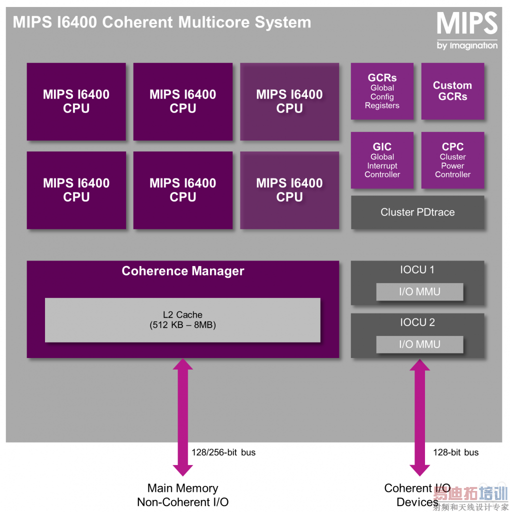 MIPS I6400 CPU 处理器的架构代号 Warrior,提供了不少重要的硬件功能,Imagination 表示,这是业内首次融合了 64 位架构、硬件虚拟化的 IP 核心,支持多线程、多核心及多集群一致处理(multi-cluster coherent processing)技术,提供可扩展的性能的处理器产品,并且在指令集、性能、功耗、核心面积等方面都全面领先竞争对手。