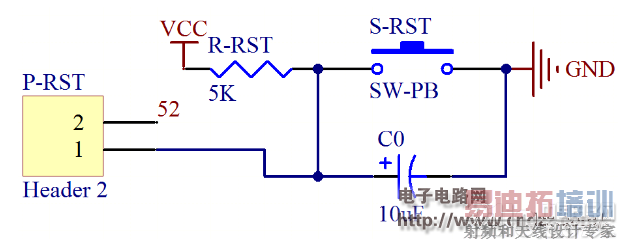 一个芯片,尤其是可编程芯片,通常在上电的瞬间需要一个短暂的时间进行内部参数的初始化,这个时候芯片无法立即进入工作状态。通常称上电初始化这些工作为复位,完成这个功能的电路称之为复位电路。本FPGA 芯片使用的是低电平复位,支持上电复位和手动复位,RESET 按下之后产生低电平。