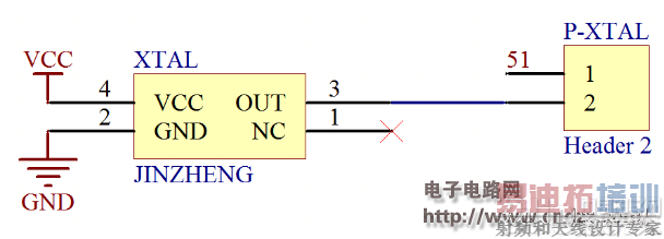 晶振是为电路提供频率基准的元器件,通常分成有源晶振和无源晶振两个大类,无源晶振需要芯片内部有振荡器,并且晶振的信号电压根据起振电路而定,允许不同的电压,但无源晶振通常信号质量和精度较差,需要精确匹配外围电路(电感、电容、电阻等),如需更换晶振时要同时更换外围的电路。有源晶振不需要芯片的内部振荡器,可以提供高精度的频率基准,信号质量也较无源晶振要好。本FPGA 芯片采用50MHZ 的有源贴片晶振作为芯片工作的时钟输入。