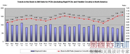 北美地区的PCB板在2013年3月份,出货量同比下降2.1%,订单同比下降2.3%。年初至今,PCB行业的总出货量下降4.4%,订单下降5.1%。与上月相比,PCB行业的出货量环比增长20%,订单环比增长22.2%。 北美地区PCB行业的订单出货比,在3月份持续走强,达到1.08。