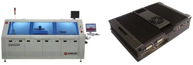 日东不仅为客户提供全套SMT生产设备及解决方案,并致力于高性能、高品质产品的开发,在线式选择性波峰焊S450A及半自动选择性波峰焊S300M,先进的模组设计,绿色、智能的整机理念,极低的能源消耗、极少的锡渣产生,满足客户对选择悍的各种灵活要求。此外,此次带来的COG图像处理器,具备快速计算与精确机器视觉定位功能,把采集物体的图像信息,经过软件图像处理技术及精确的图像算法的处理,把X,Y位置信息和平面角度处理系统串口通讯传输给外部设备(PLC)达到整机精度要求。